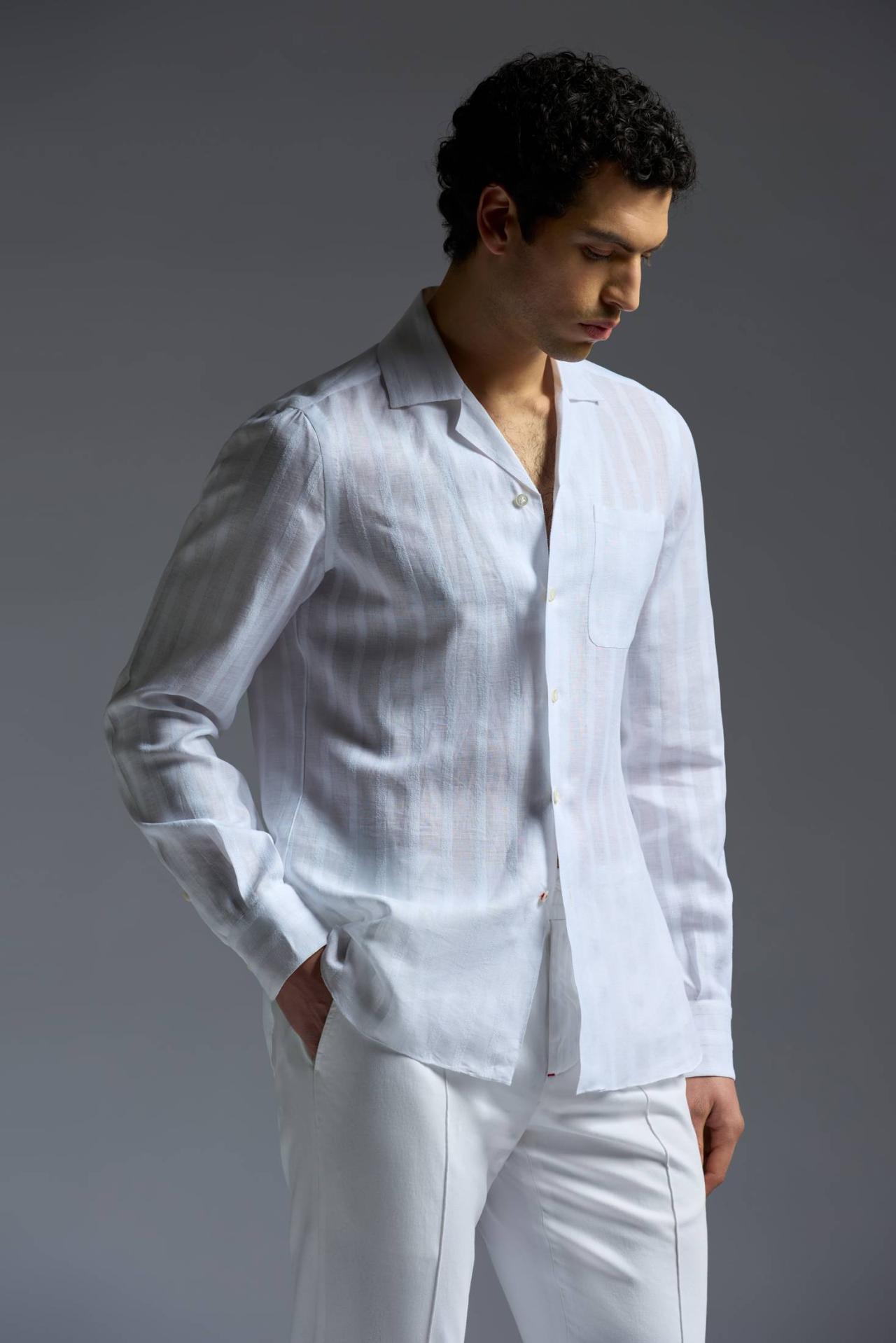 ISAIA White Camp Collar Shirt